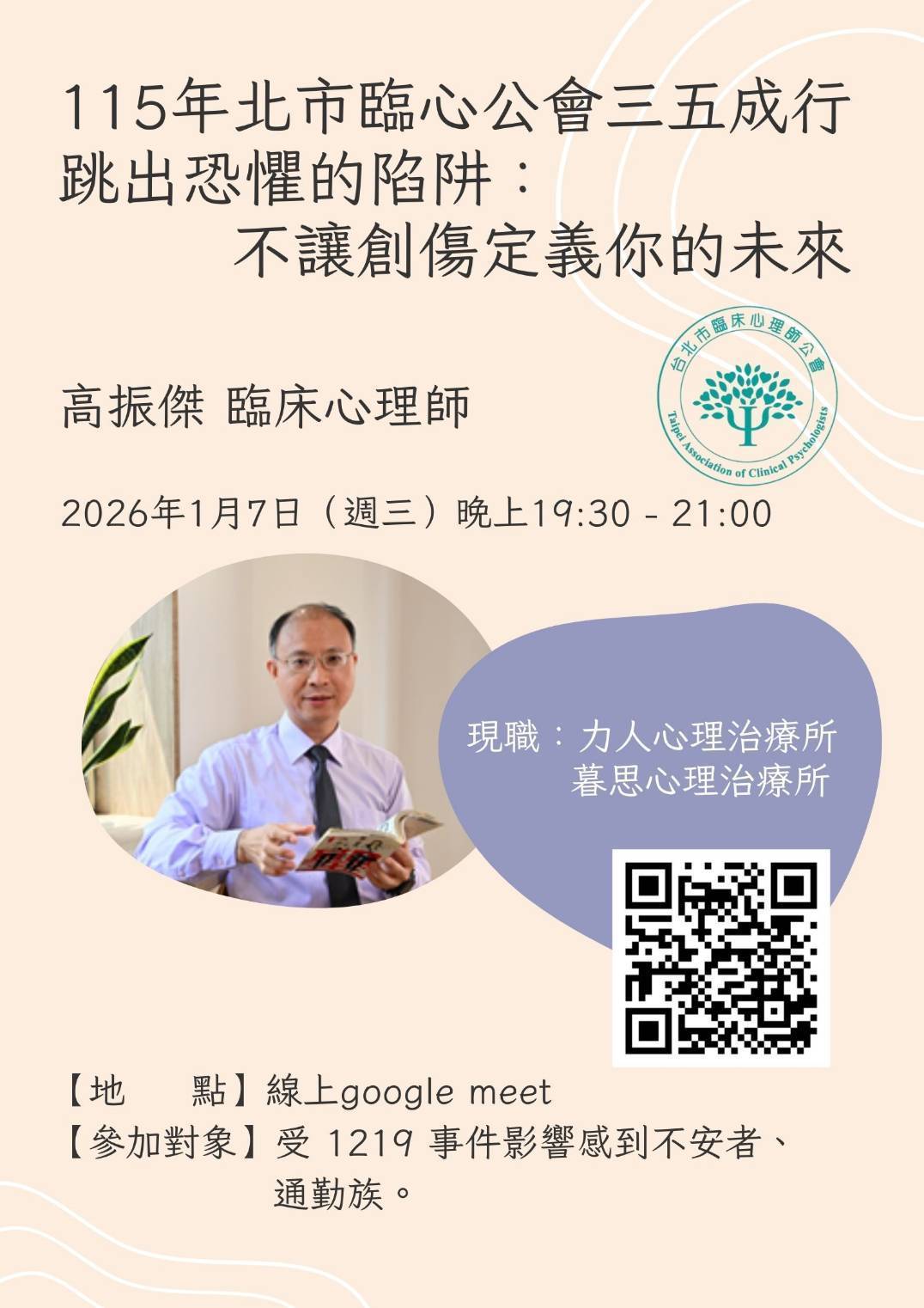 115年北市臨心公會三五成行講座|1/7跳出恐懼的陷阱:不讓創傷定義你的未來