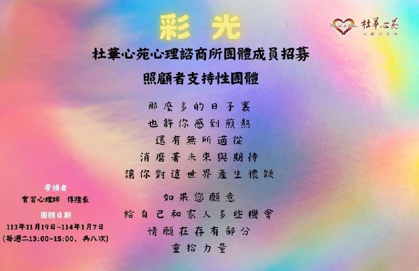 轉知 【杜華心苑心理諮商所】2024年照顧者支持性公益團體